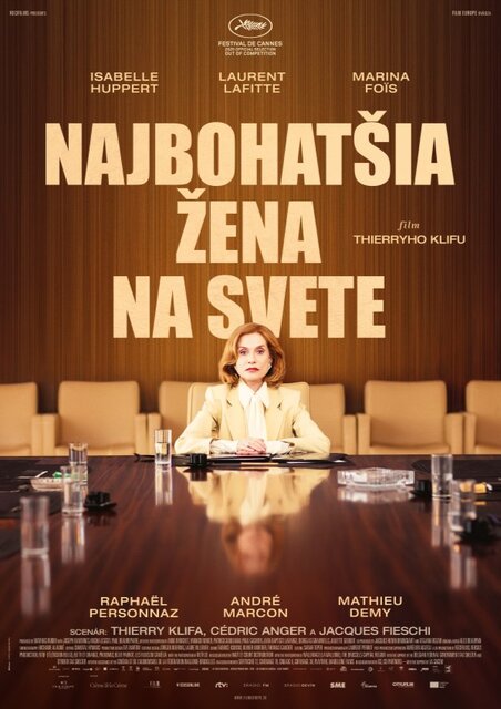 Isabelle Hupert v delikátnej úlohe, šitej priamo na mieru, exceluje v novom filme scenáristu a režiséra Thierryho Klifu NAJBOHATŠIA ŽENA NA SVETE, ktorý je voľne inšpirovaný skutočným škandálom okolo Liliane Bettencourt, dedičky rozprávkového bohatstva spoločnosti L'Oréal. Marianne Farrère (Huppert), multimilionárka a šéfka spoločnosti Windler Group, je najbohatšou ženou na svete. Pierre-Alain Fantin (Laurent Lafitte) je parížsky dandy, spisovateľ a fotograf. Po stretnutí počas fotografovania sa títo dvaja stanú nerozlučnými priateľmi. Ich priateľstvo – z ktorého Pierre-Alain veľmi rád finančne profituje – prekvapuje, udivuje, zaujme, a v dôsledku toho znepokojí Marianninu suitu aj rodinu. Predovšetkým jej dcéra (Marina Fois) zvádza vnútorný boj kvôli nečakanej náklonnosti svojej matky k tomuto mladšiemu mužovi a rozbehne súkromné vyšetrovanie, ktoré bude mať pre všetkých vážne dôsledky...